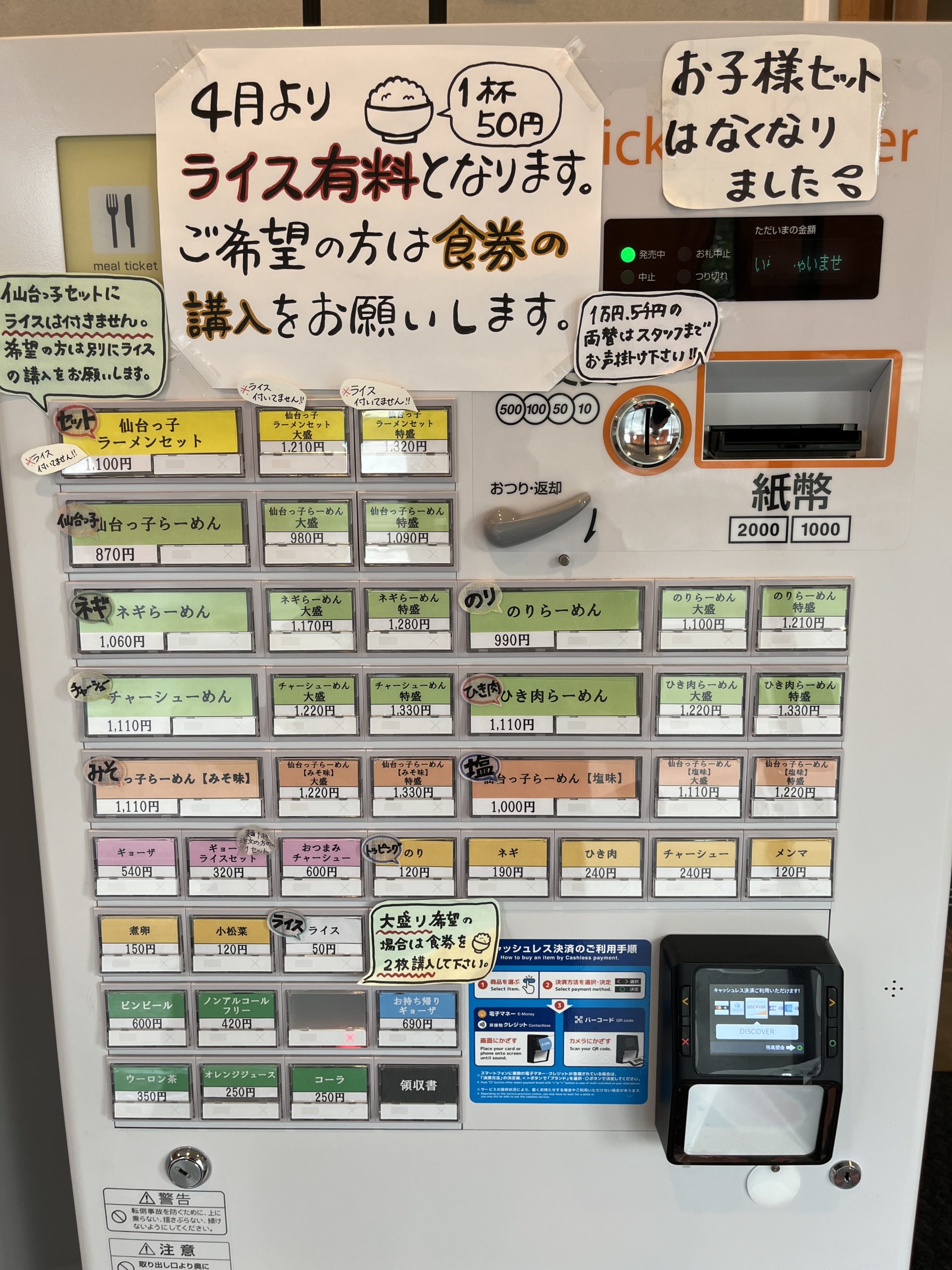移転後は食券制に。ブログ当時とは色々と変更点があるので注意。